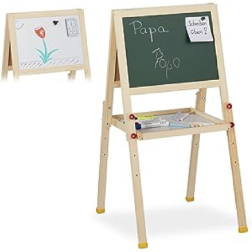 Relaxdays 10027237 Tableau droit enfant, magnétique deux côtés, craie et marqueur, réglable en hauteur, HlP 77x39x44,5 cm,...