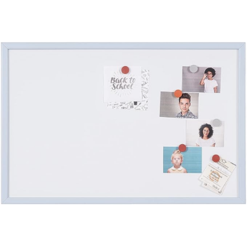 Simple et pratique, fabriqué à partir de matériaux de haute qualité Surface magnétique effaçable à sec de haute qualité idéale pour une utilisation fréquente Cadre pastel bleu tendance Des tableaux blancs légères et économiques Installation facile avec kit de fixation murale et accessoires inclus